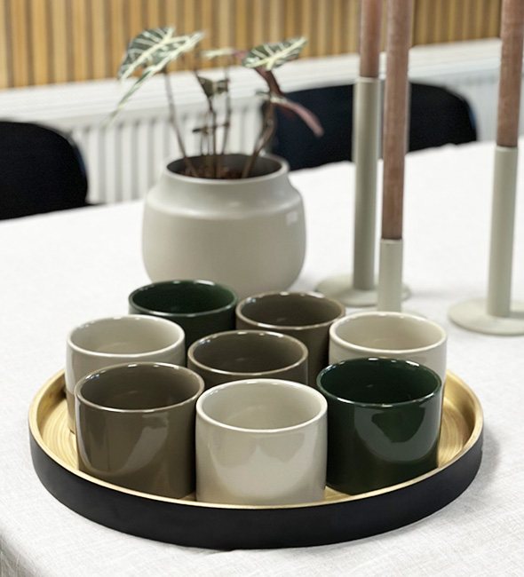 Med OMUG for du et produkt, der kan lidt af det hele! Brug det som serveringsskål, potte, dekorationsskål eller til din yndlingskaffe. Forestil dig en flot dekoration til jul, en mindre sukkulent, en skål med nødder eller slik eller hvad med en suppe eller souffle. OMUG er det perfekte produkt til at skabe stemning og til at give oplevelsen af selvforkælelse og æstetik.