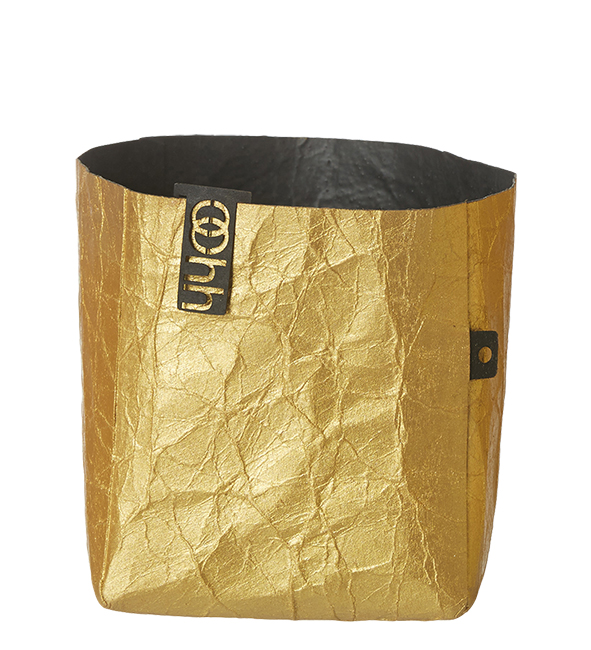 Fremstillet i genbrugspapir, belagt med naturgummi. Med et eksklusivt metallic look. 100 % vandtæt.