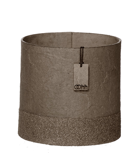 WOODz Edge designet er fremstillet af OOhhs nye generation af Zero Waste Paper, der giver mulighed for at skabe smukke, flerdimensionelle mønstre – som dette elegante mønster der er brugt her - Stone Pattern. Som en flot detalje, er har den nederste del af potten en helt særlig detalje, hvor af navnet WOODZ kommer. Denne detalje er fremstillet af genanvendt savsmuld fra lokale møbelsnedkere på Sri Lanka, hvilket tilføjer et organisk og autentisk touch og forbinder designet med resten af OOhhs WOODz serie.