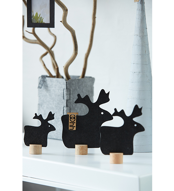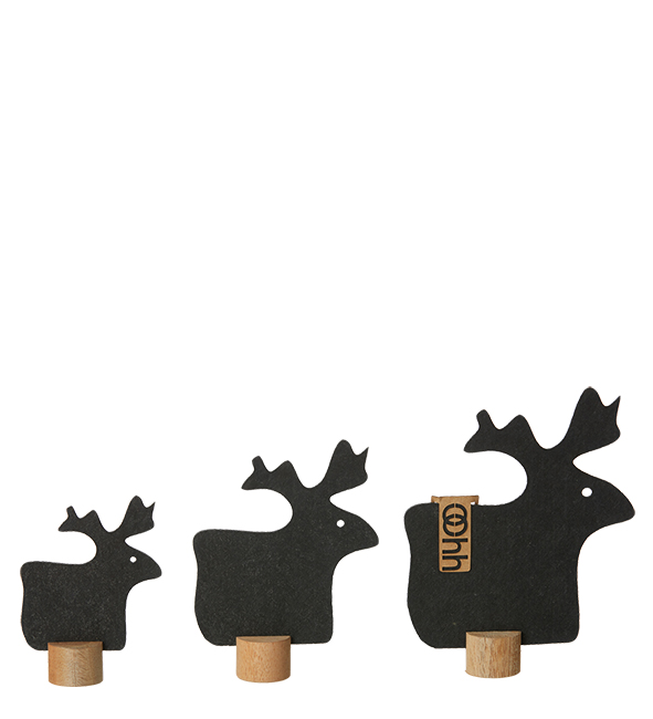 Sæt med 3 eco-felt rensdyr på træfod, Black