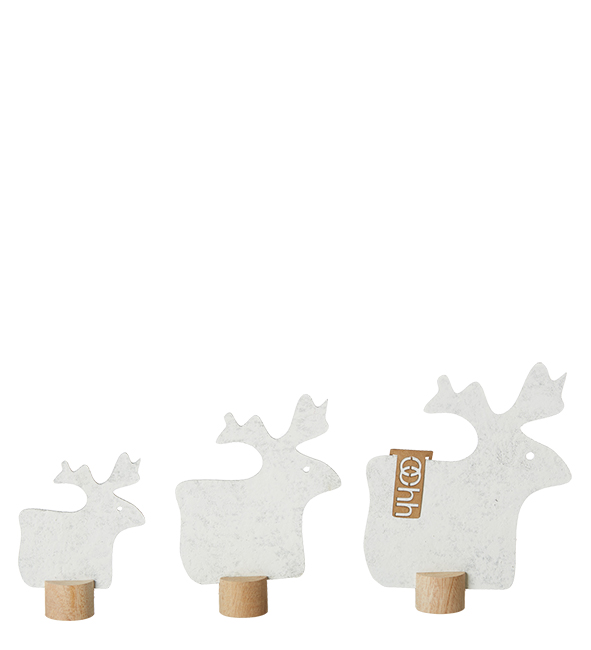 Sæt med 3 eco-felt rensdyr på træfod, Hvid