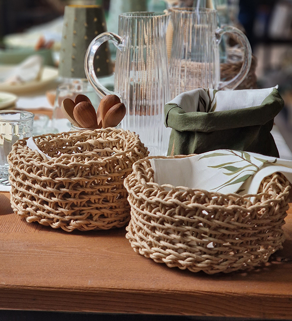 Anvend dette smukke kurvesæt til planter, opbevaring af f.eks. legetøj, garn, strømper, puder, tæpper med mere eller anvend dem til servering af brød m.m. OOhh kurvene er ideelle til uanede anvendelser i hjemmet. Kombinationen af væveteknikken og den kraftige papirkvalitet giver dig en garanti for stærke og stabile kurve.