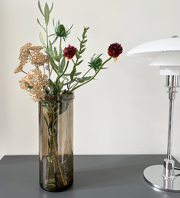 Barcelona vase er håndlavet i kraftig genbrugsglas. Vasen har en smuk håndlavet kant som giver den et skønt design. Vasens højde og slanke design gør den perfekt til tidens høje buketter, grene m.m.