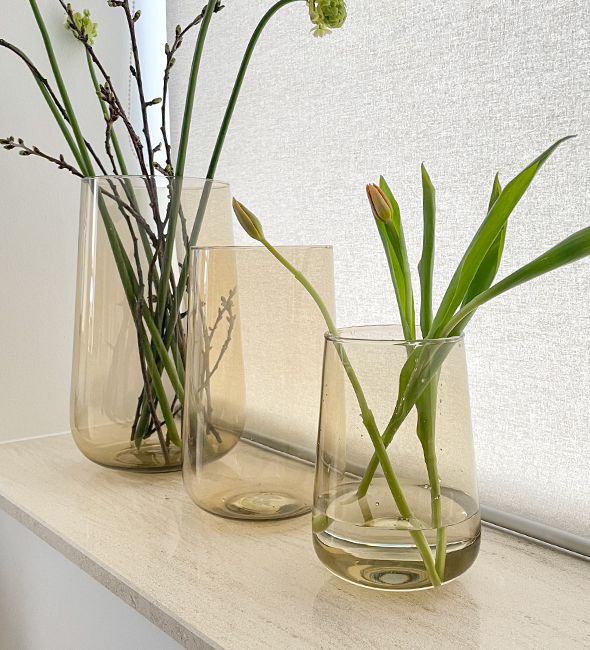 Valencia Drop vasen er en smuk serie i 3 flotte størrelser. Vasen er fremstillet i mundblæst genbrugsglas. Drop er en utrolig elegant og interessant serie til dig der værdsætter et elegant design i dit hjem, i restauranten, på hotellet m.m. De 3 størrelser inviterer til at lege med de forskellige størrelser og lave flotte kombinationer.