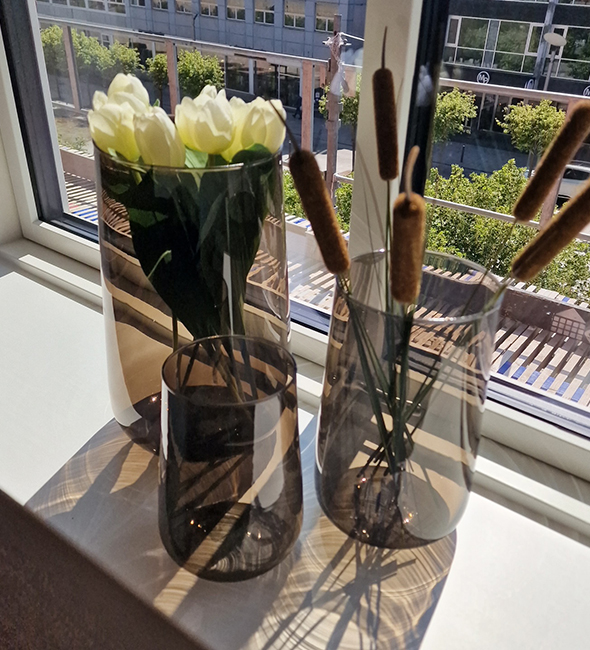Ved at vælge et håndlavet produkt er du med til at beskytte miljøet for store energibesparelser og samtidig for du et smukt unikt produkt. Genbrugsglas har den unikke egenskab at glas kan genbruges igen og igen uden at miste dets oprindelige kvalitet. Alle produkter i OOhhx glas kollektionen er fremstillet i genbrugsglas og er enten håndlavet eller mundblæst. På grund af risiko for farveændring på farvet genbrugsglas anbefaler vi ikke maskine opvask.