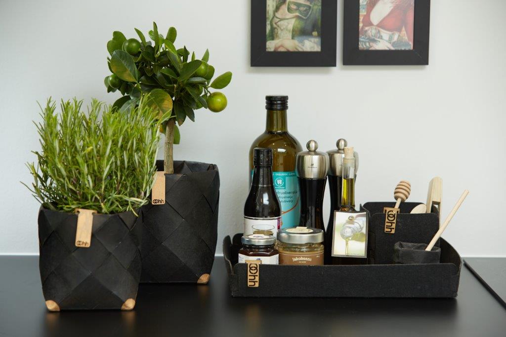 Når funktionalitet, lækkert design og genbrug forenes! Dette fine Tray Set er fra Storage serien, der består af 4 forskellige dele, der både hver for sig og sammen er elegante. Fremstillet i eco-felt, som er 100 % genbrugte plastikflasker og poser.